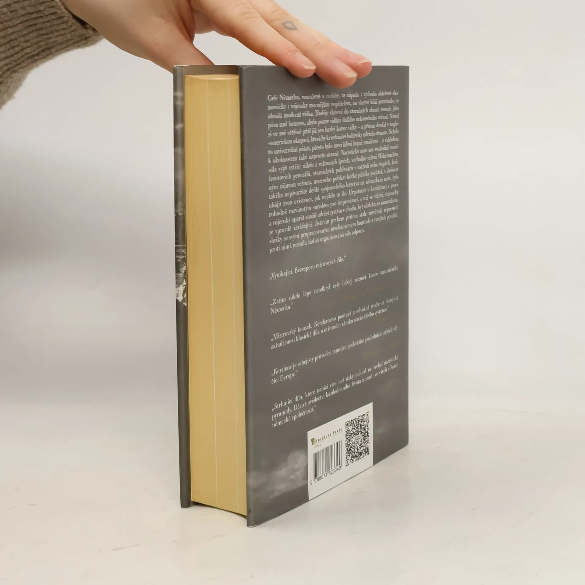 Mistrná a ojedinělá studie mechanismů fungování nacistické společnosti v závěrečných měsících druhé světové války se zabývá zásadními otázkami spojenými s koncem nacistického Německa. Jaké motivy vedly Německo k pokračování v boji, i když bylo jasné, že válku prohrálo? Jak dokázal rozkládající se hitlerovský stát přežít až do příchodu Rudé armády k Říšskému kancléřství? Proč se německý národ nevzpíral režimu, jenž jej vystavil brutálnímu teroru a vedl zemi do záhuby, na rozdíl od situace v roce 1918? Jak armáda stále poslušně plnila Hitlerovy nesmyslné rozkazy? Jakou roli hrály strach a fanatismus v sebezničujícím kurzu? A jak ovlivnil spojenecký požadavek na bezpodmínečnou kapitulaci agonický odpor třetí říše? Ian Kershaw, uznávaný britský historik a expert na éru nacistického Německa, se snaží na tyto otázky odpovědět. Jeho komplexní a dramatické líčení finálních měsíců existence hitlerovského státu začíná nezdařeným atentátem na Hitlera v červenci 1944 a končí jeho smrtí a kapitulací v květnu 1945. Text obsahuje bohatý poznámkový aparát a je doplněn jedinečnou fotografickou přílohou a mapkami.