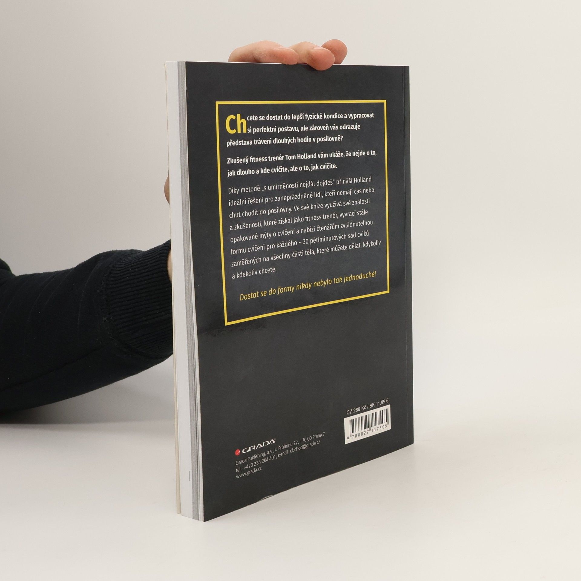 Chcete se dostat do lepší fyzické kondice a vypracovat si perfektní postavu, ale zároveň vás odrazuje představa trávení dlouhých hodin v posilovně? Zkušený fitness trenér Tom Holland vám ukáže, že nejde o to, jak dlouho a kde cvičíte, ale o to, jak cvičíte. Díky metodě „s umírněností nejdál dojdeš“ přináší Holland ideální řešení pro zaneprázdněné lidi, kteří nemají čas nebo chuť chodit do posilovny. Ve své knize využívá své znalosti a zkušenosti, které získal jako fitness trenér, vyvrací stále opakované mýty o cvičení a nabízí čtenářům zvládnutelnou formu cvičení pro každého – 30 pětiminutových sad cviků zaměřených na všechny části těla, které můžete dělat, kdykoliv a kdekoliv chcete. Dostat se do formy nikdy nebylo tak jednoduché!