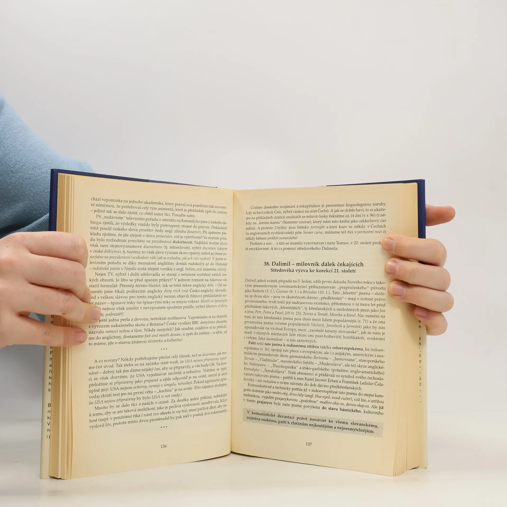 Úvahy a eseje o krásách a jedinečnosti češtiny v kontextu evropských a světových jazyků. Významný český slavista a baltista, který působil od roku 1963 jako univerzitní profesor v anglofonních zemích, popisuje v 99 jazykových sloupcích, jež nazývá „rozmluvami“, nejen zvláštnosti češtiny oproti slovanským jazykům či angličtině, ale seznamuje i s úsilím ukrajinských, běloruských či islandských jazykovědců o čistotu jejich jazyků. Některé rozmluvy se věnují opomíjeným jazykovědným průkopníkům, jako například Václavu Janu Rosovi (1621–1689), Ondrovi Łysohorskému (vl. jm. Erwin Goj, 1905–1989) či Františku Skorynovi. Protože stati vznikaly během třiceti let a některá jejich témata se občas opakují, jsou provázány odkazy uvnitř textu jedné stati na číslo jiné rozmluvy.