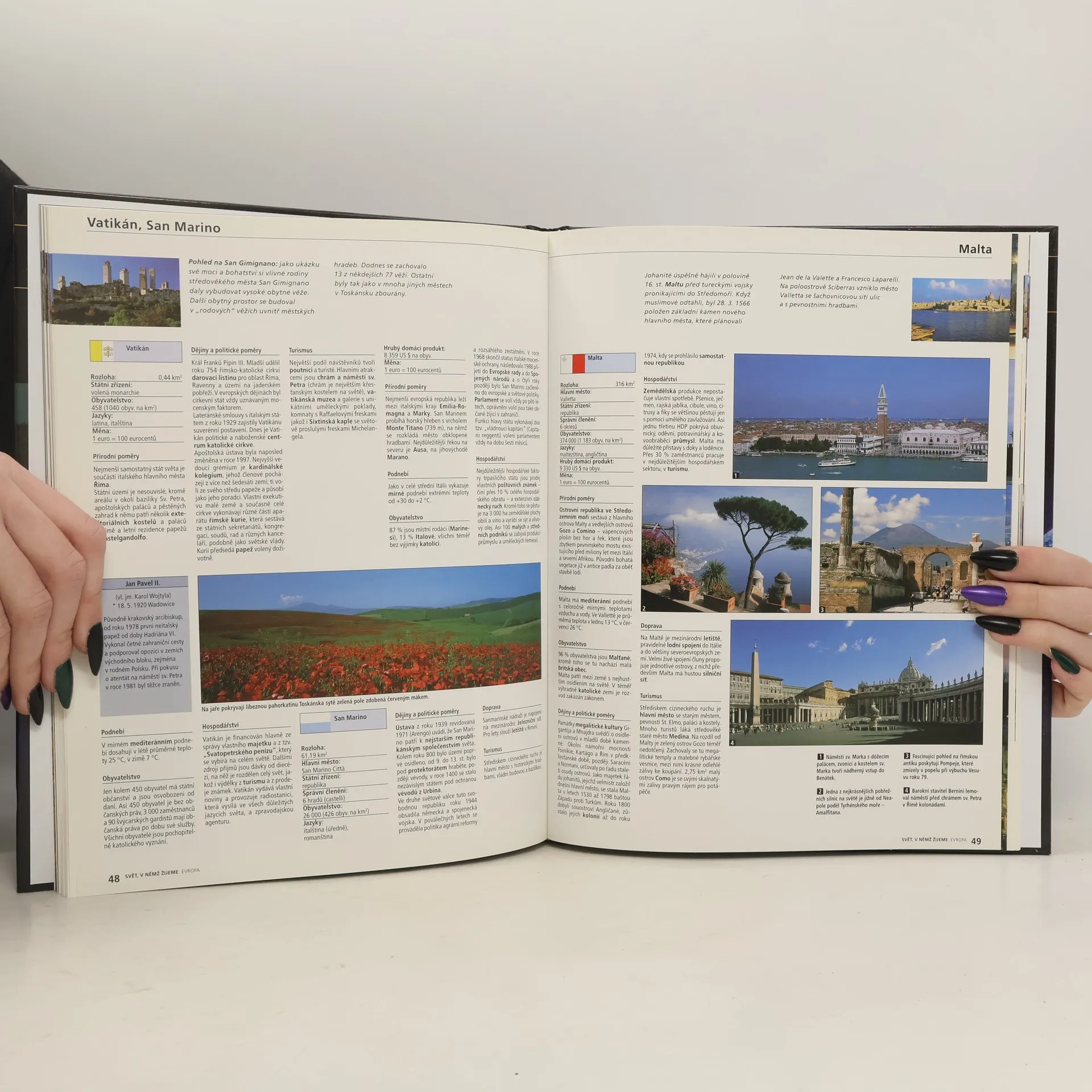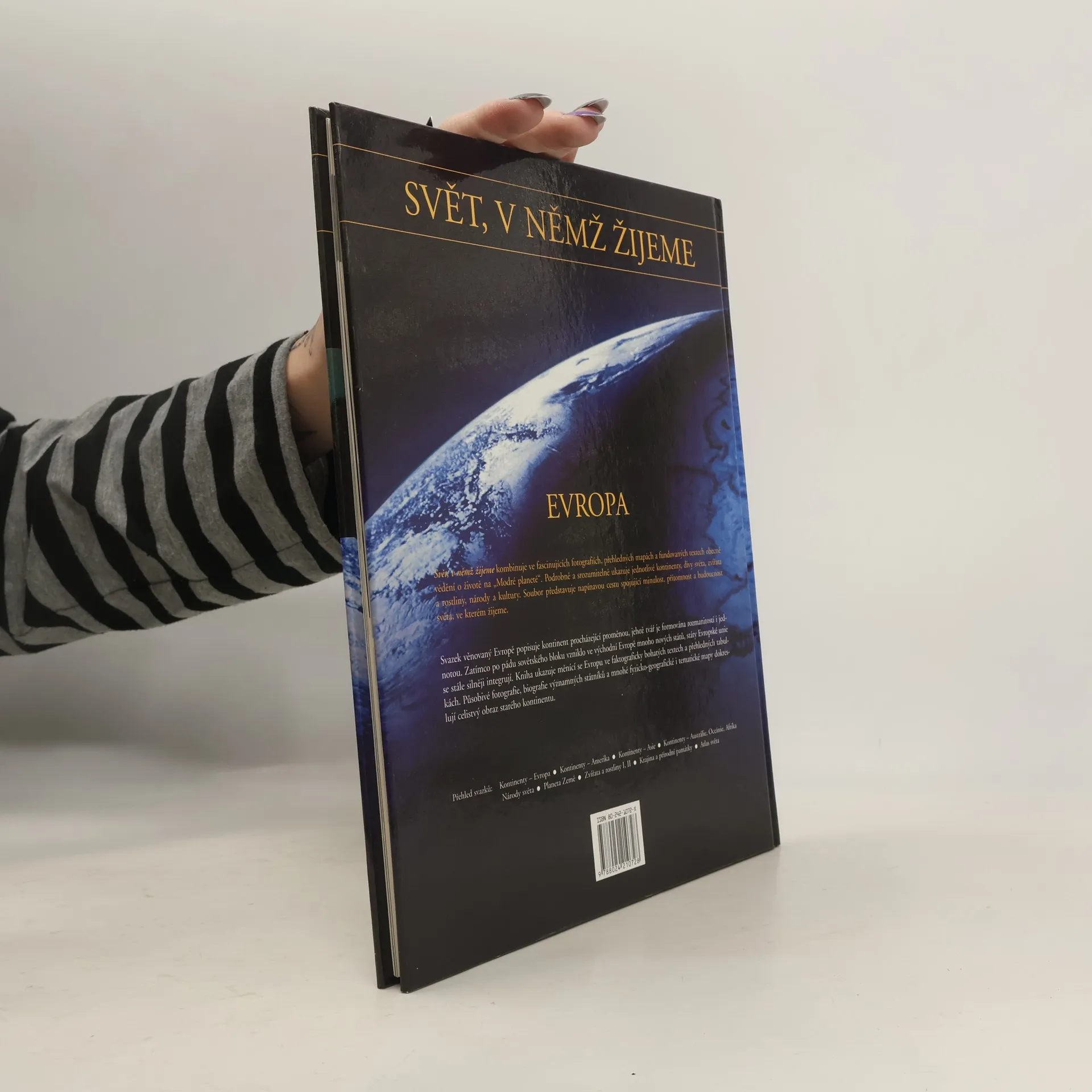 Svět, v němž žijeme, kombinuje ve fascinujících fotografiích, přehledných mapách a fundovaných textech obecné vědění o životě na "Modré planetě". Podrobně a srozumitelně ukazuje jednotlivé kontinenty, divy světa, zvířata a rostliny, národy a kultury. Soubor představuje napínavou cestu spojující minulost, přítomnost a budoucnost světa, ve kterém žijeme. Díl věnovaný Evropě popisuje kontinent procházející proměnou, jehož tvář je formována rozmanitostí i jednotou. Zatímco po pádu sovětského bloku vzniklo ve východní Evropě mnoho nových států, státy Evropské unie se stále silněji integrují. Kniha ukazuje měnící se Evropu ve faktograficky bohatých textech a přehledných tabulkách. Působivé fotografie, biografie významných státníků a mnohé fyzicko-geografické i tematické mapy dokreslují celistvý obraz starého kontinentu.
