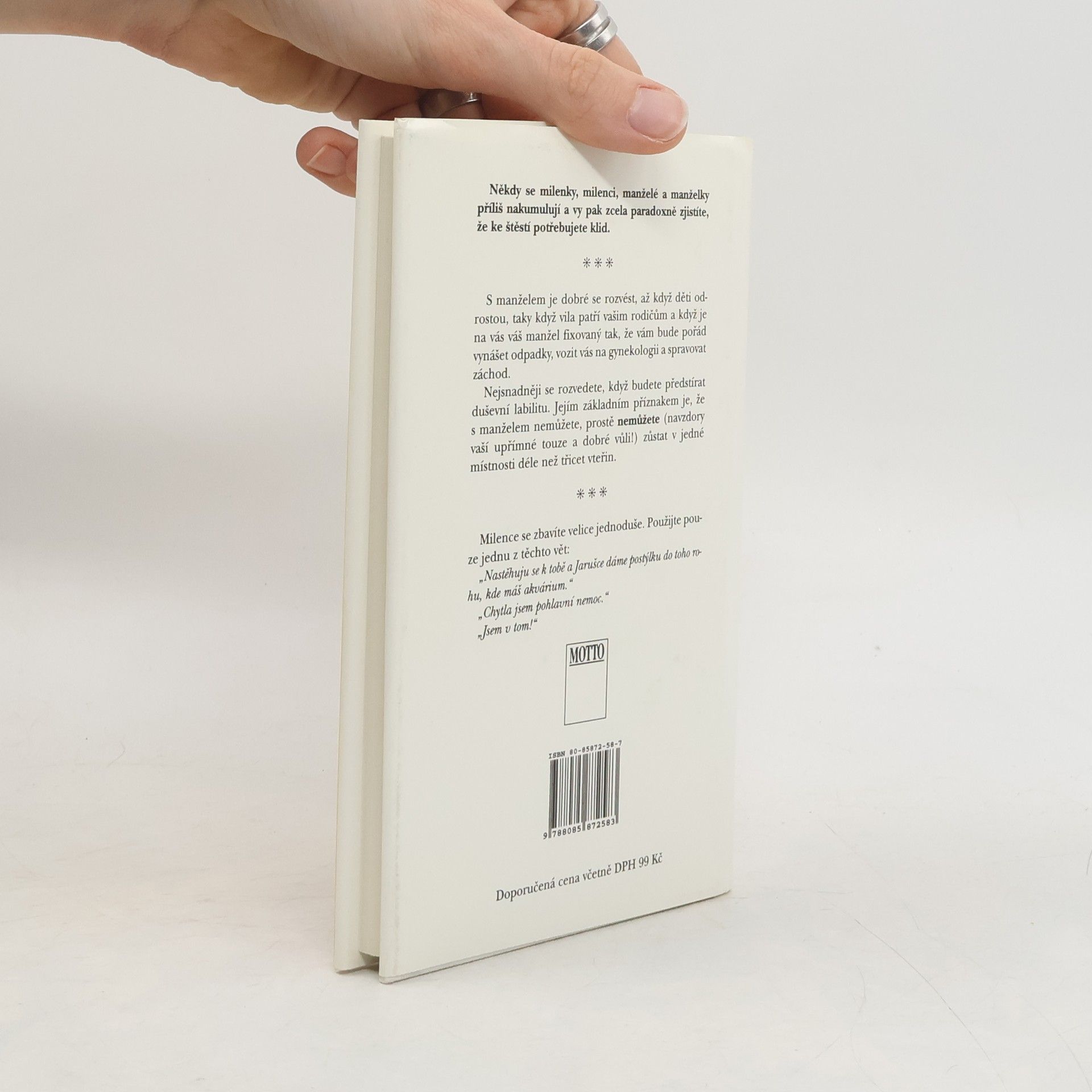 Lehké poznatky, vyslechnuté osudy a rady, které si dávají kamarádky, kamarádi, rodiče, děti a známí. Neberte všechno, co je na papíře, vážně. Slova mají totiž skutečnou vážnost jen tehdy, když jde o petice, o závěť a o smlouvy...