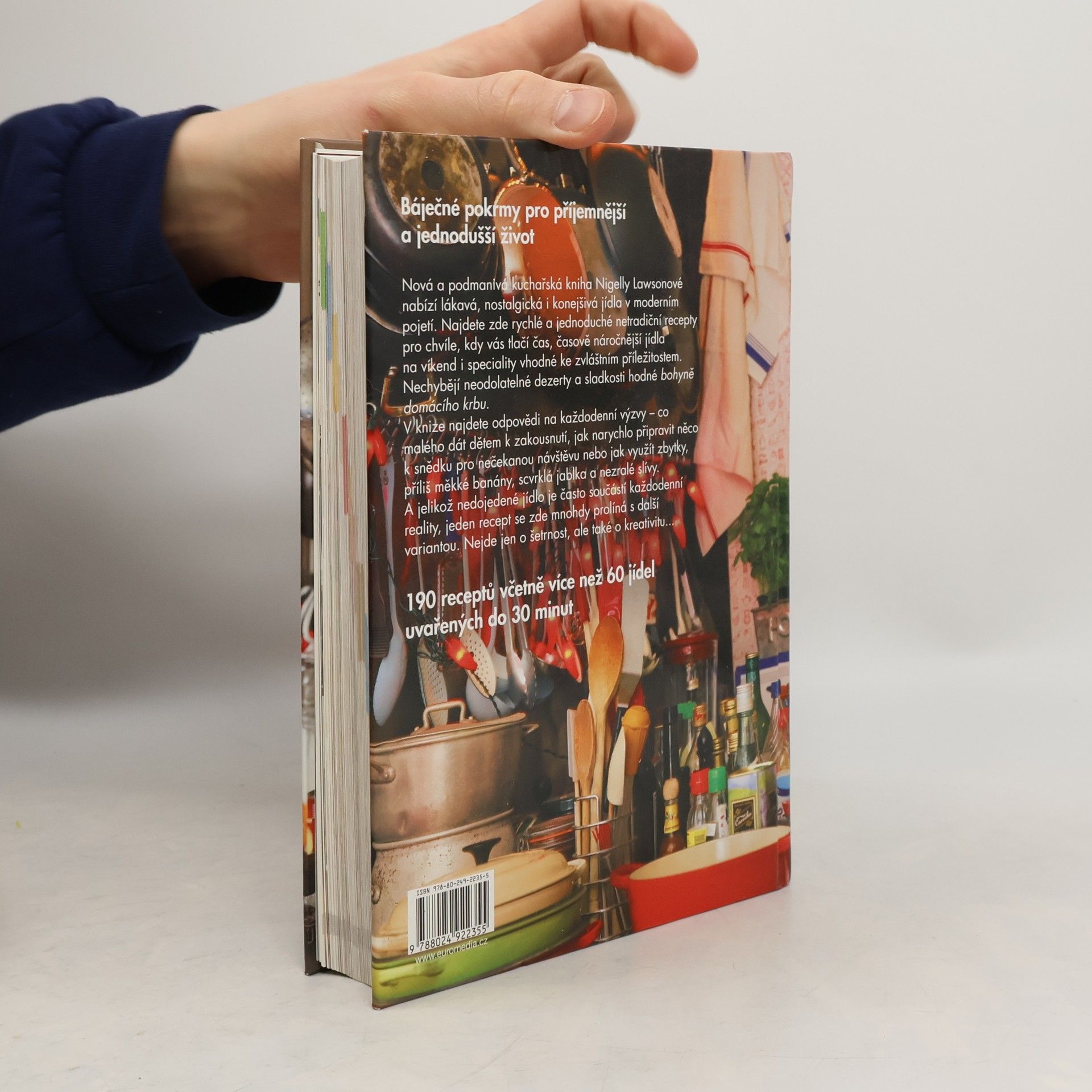 190 receptů od rodinného krbu, včetně asi 60 rychlých jídel uvařených do 30 minut Kuchyně nabízí jídla pro potěchu – lákavá, nostalgická, ale moderní. Jednoduché pokrmy pro chvíle, kdy vás tlačí čas, nebo časově náročnější jídla na víkend i speciality vhodné k zvláštním příležitostem. Nechybějí neodolatelné dezerty „bohyně domácího krbu“. Navíc kniha dává odpovědi na výzvy – co dát dětem k zakousnutí, jak narychlo udělat něco k snědku pro nečekanou návštěvu. A jelikož nedojedené jídlo je součástí reality, jeden recept se mnohdy prolíná s dalším – šunková kolena s hráškovou polévkou a pirohy, dušené kuře s čínským kuřecím salátem. Nejde jen o šetrnost, ale především o kreativitu pokrmů.