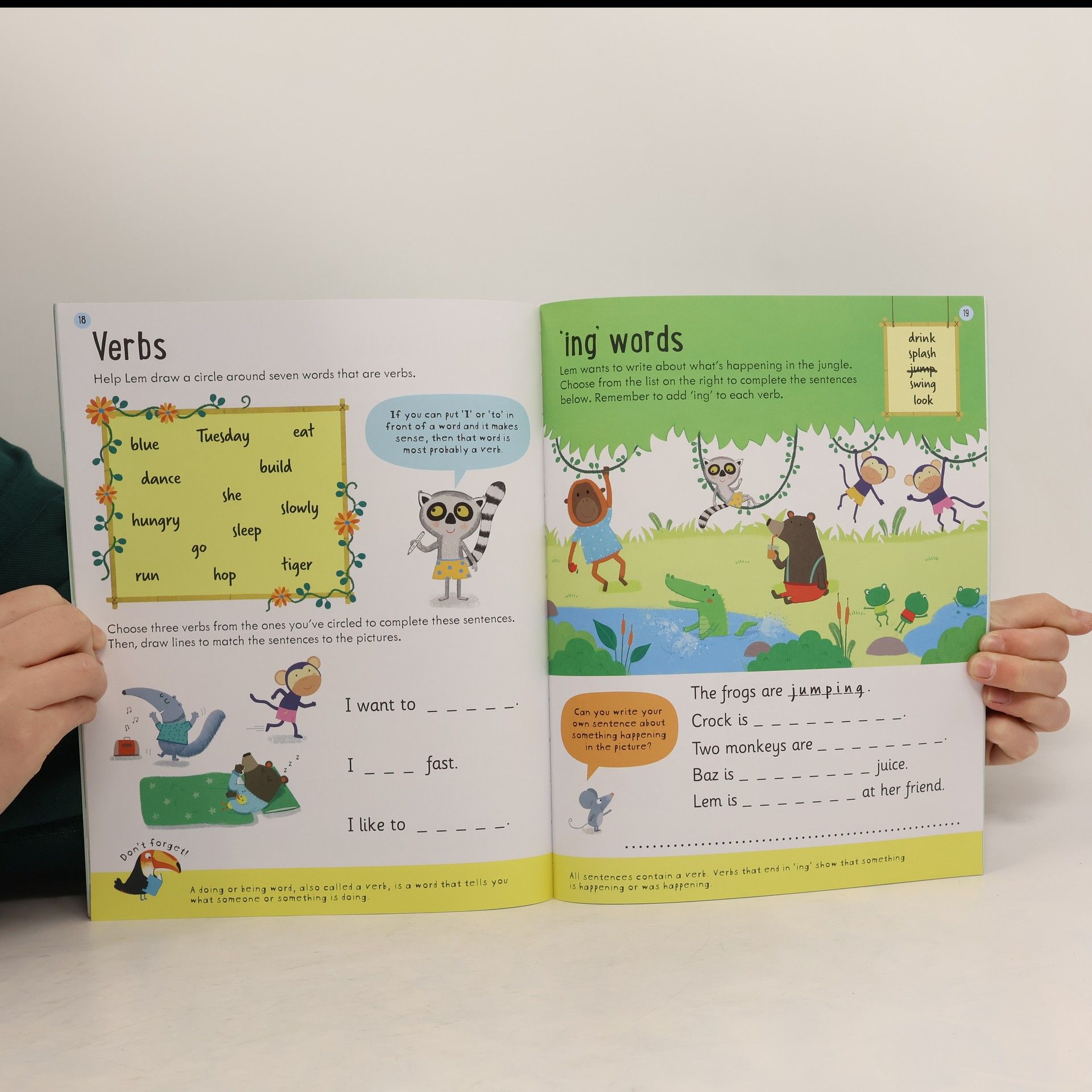 An activity book with colourful activities to help children learn about sentence types, nouns, verbs, adjectives and tenses. Part of the Usborne Key Skills series, supporting the English lessons children do at school.